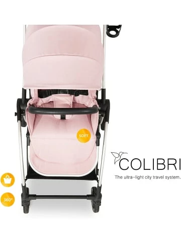 Der Colibri Buggy von hauck ist ein sehr flexibler, gut ausgestatteter Alltagsbegleiter, der sich sehr leicht und kompakt zusammenfalten lässt. In Kombination mit dem Colibri Kinderwagenaufsatz oder einer Babyschale kann der Buggy schon ab der Geburt verwendet werden. Kinder, die sitzen können, sind im Buggy mit Sportwagenaufsatz komfortabel bis zum Alter von etwa 4 Jahren unterwegs. Der Sitz kann gewendet werden, so dass das Kind je nach Stimmung Blickkontakt mit den Eltern halten oder sich neugierig in der Umgebung umschauen kann. Damit das Kind schnell ein- und aussteigen kann, genügt es, den Schutzbügel nach oben zu klappen. Das große Sonnenverdeck mit hohem UV-Schutz-Faktor lässt sich in der Höhe anpassen, um zusätzlichen Platz zu schaffen. Der höhenverstellbare Schiebegriff kann ganz einfach an die Körpergröße der schiebenden Person angepasst werden. Eine weitere praktische Ergänzung ist der Getränkehalter, der unterwegs stets in Reichweite ist.Details:– Buggy mit umsetzbarer Sitzeinheit mit 5-Punkt-Gurt– höhenverstellbarer Schiebegriff– verstellbare Rückenlehne mit Liegeposition – Sonnenverdeck mit UV-Schutz 50+– schwenk- und feststellbare Vorderräder– wartungsfreie und angenehm gefederte Kunststoffräder– verstellbare Fußstütze– leichtes, kompaktes ZusammenklappenLieferumfang:– 1 x Gestell – 1 x Sportwagenaufsatz– 1 x Schutzbügel– 1 x 5-Punkt-Sicherheitsgurt– 1 x Einkaufskorb– 1 x Getränkehalter– 1 x Tragegurt – 1 x BedienungsanleitungMaße:– aufgebaut: ca. 91 x 55 x 104 cm (L x B x H)– zusammengeklappt: ca. 66 x 55 x 25,5 cm (L x B x H)– Schieberhöhe: ca. 91-104 cm– Raddurchmesser vorne: ca. 14 cm – Raddurchmesser hinten: ca. 15,5 cm– Belastbarkeit: bis zu 25 kg– Gewicht: ca. 6,9 kgMaterial: – Gestell: Aluminium – Bezug: 100 % PolyesterAltersempfehlung:ab 6 Monat(e) bis 36 Monat(e)