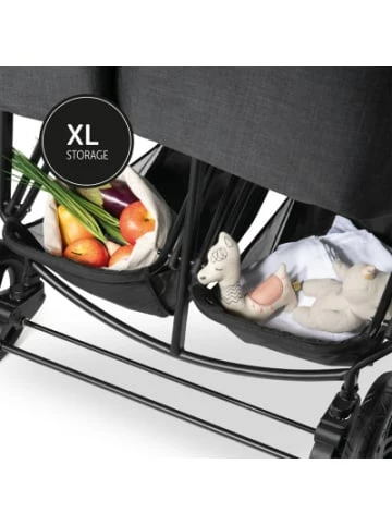 Mit dem Zwillings- und Geschwisterbuggy Uptown Duo von Hauck sind Geschwister oder Zwillinge gemeinsam mit den Eltern unterwegs. Das nur 77 Zentimeter breite Design passt durch jede Tür und lässt sich unterwegs leicht zusammenfalten. Altersempfehlung: ab 6 Monaten, mit separat erhältlichem Zubehör ab Geburt Belastbarkeit: bis 36 kg, je Sitz bis 15 kg, je Korb bis 3 kg Verwendung: für die Stadt; Travelsystem mit Babyschale (separat erhältlich) Klappmaß: 84(L) x 77,5(B) x 36(H) cm Gewicht: 17,47 kg Räder: gefederte Gummiräder, Vorderrad schwenk- und feststellbar Lieferumfang: Gestell, 2 Sportsitze, 2 3-Zonen-Verdecke, 2 XL-Untergestellkörbe, 2 Adapter, Getränkehalter Gestell: Aluminium, Schieberhöhe 103 cm, kompakt faltbar, Feststellbremse Sportsitze: 5-Punkt-Sicherheitsgurte, bis in die Liegeposition verstellbare Rückenlehnen, verstellbare Fußstützen, abnehmbare, verstellbare Vorderbügel, verlängerbare Verdecke mit abdeckbaren Belüftungsfenstern und UV-Schutz 50+, Getränkehalter Sicherheit und Komfort Der Uptown Duo macht Familien startklar für Abenteuer mit zwei Kindern. Der Geschwister-oder Zwillingswagen ist so schlank, dass er durch jede gängige Tür passt. Damit sich die Kids rundum wohlfühlen, lassen sich die Rückenlehnen der Sitze individuell bis in die Liegeposition verstellen. Die Fußstützen sind ebenso anpassbar. Mit den 5-Punkt-Gurten und den gepolsterten Vorderbügeln mit Durchrutschschutz sind die Kleinen immer sicher unterwegs. Die extragroßen Sonnenverdecke sind verlängerbar. So halten sie die Gesichter der Kleinen zuverlässig im Schatten. Die Sichtfenster mit Netzstoff sorgen für optimale Luftzirkulation. Zudem haben Eltern ihren Nachwuchs so immer im Blick. Spielzeug, Einkäufe und Naschereien finden in den zwei großen Körben Platz. Eine kleine Erfrischung ist im praktischen Getränkehalter jederzeit griffbereit. Gestell und Fahrwerk Der Uptown Duo setzt auf ein langlebiges, robustes Aluminiumgestell. Auf Reisen oder unterwegs lässt sich der Wagen auf ein kompaktes Faltmaß zusammenklappen. Die Gummiräder laufen leicht über Asphalt oder die Böden von Shopping Malls. Sie sind pannensicher und gefedert. Die Vorderräder sind schwenkbar. So sind auch enge Kurven für den Buggy kein Problem. Die praktische Feststellbremse lässt den Wagen sicher parken. Lieferumfang Der Lieferumfang des Uptown Duo Buggys beinhaltet das Gestell, zwei Sportsitze mit Verdecken und zwei Gestellkörbe. Zudem sind zwei Adapter für die Nutzung des Buggys als Travelsystem enthalten. Hinweis Der Uptown Duo kann mit den separat erhältlichen Babyschalen Comfort Fix oder Select Baby (i-Size) von Hauck kombiniert werden.Länge: 94 cmBreite: 78 cmHöhe: 103 cmPflegehinweise:* Bleichen: Nicht bleichen* Waschen: Handwäsche maximale Temperatur 40°Belastbar bis: 18 kg,Geschlecht: UnisexAltersempfehlung:ab 6 Monat(e) bis 4 Jahr(e)