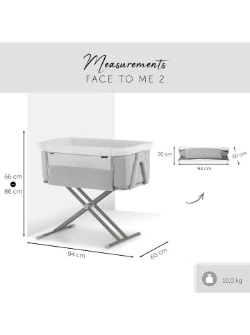 Das Beistellbett Face to Me 2 von hauck ist höhenverstellbar, so dass es sich der Größe des Elternbetts anpasst und auch für Boxspringbetten geeignet ist. Das absenkbare Seitenteil ermöglicht es Ihnen, Ihr Baby zu beruhigen oder zu sich zu holen, ohne aufstehen zu müssen. Der Netzstoff an den Seiten sorgt für eine angenehme Luftzirkulation und das Baby kann Sie jederzeit sehen.Details:– absenkbares Seitenteil– 5-fach höhenverstellbar– mit Gurten zur Befestigung am Elternbett – auch als Stubenwagen verwendbar – Netzstoff an den Seiten zur besseren Luftzirkulation – mit Reflux-Funktion, die dem Rückfluss der Magensäure in die Speiseröhre vorbeugt – atmungsaktive Matratze – leichtes ZusammenklappenMaße: ca. 94 x 60 x 20 cm (H x B x T)Altersempfehlung:ab 0 Monat(e) bis 9 Monat(e)
