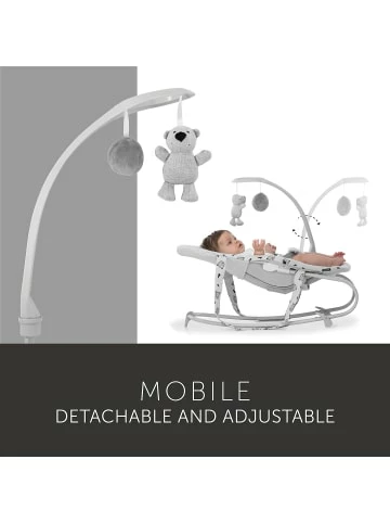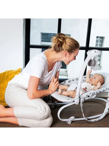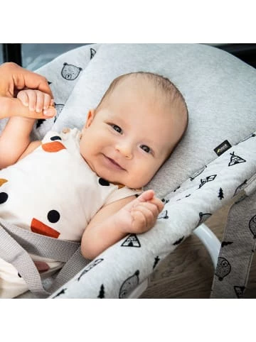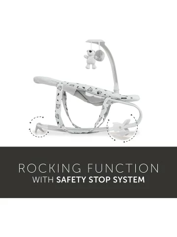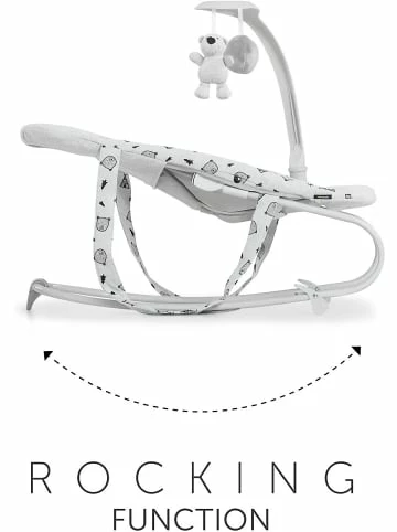 Mit dem kuscheligen Bouncer Deluxe von HAUCK lässt sich die Rückenlehne per Einhand-Bedienung in Liegeposition verstellen, ein Mobile sowie das Wippengestell sorgen für entspannte Abwechslung.Der im Lieferumfang enthaltene Sitzverkleinerer stützt das Köpfchen und die zusätzliche seitliche Polsterung sorgt für höchsten Komfort.Die große Liegefläche lässt sich mit nur einer Hand in mehreren Stufen flach stellen. So finden Eltern immer die richtige Position zum Füttern oder Spielen. Durch die erhöhte Position auf dem Kinderstuhl wird beim Füttern der Rücken von Mama und Papa geschont. Die süßen Anhänger am Mobile regen den kleinen Schatz zum Greifen und Drehen an und fördern die motorischen Fähigkeiten.Der Spielebogen kann jederzeit zur Seite gedreht oder abgenommen werden. Der 3-Punkt-Gurt sorgt für die Sicherheit des Kleinen. Möchte der Nachwuchs lieber etwas Abwechslung, wird der Babyaufsatz einfach auf dem mitgelieferten Untergestell befestigt und einfach als Wippe weitergenutzt.Details:– weich und gemütlich– mit tollem SpielebogenLieferumfang:– 1 x Bouncer Deluxe– 1 x abnehmbarer Spielebogen mit süßen Anhängern– 1 x WippgestellMaße: ca. 45 x 66 x 49 (B x H x L)Material:Korpus: KunststoffBezug: 100% PolyesterAltersempfehlung:ab 0 Monat(e) bis 9 Monat(e)