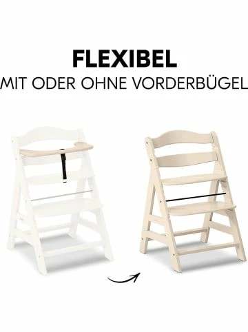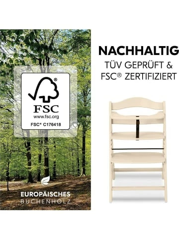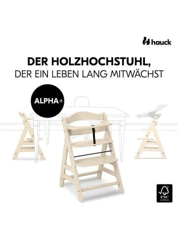 So sitzt Ihr Nachwuchs sicher mit am Tisch – mit Alpha Plus, dem Hochstuhl, der mitwächst. Fußstütze und Sitzplatte sind in Höhe und Tiefe verstellbar, wodurch der Hochstuhl vom 6. Monat bis etwa zum 12. Lebensjahr genutzt werden kann. Danach kann er zu einem richtigen Stuhl umgebaut werden. Als Hochstuhl liegt die maximale Belastbarkeit bei etwa 15 kg. Die Seitenteile sind aus Massivholz, Sitz- und Fußteil aus Verbundplatten. Der Hochstuhl besteht aus nachhaltiger Buche, wodurch Sie beim Kauf kein schlechtes Gewissen haben müssen. Auch um die Sicherheit Ihres Lieblings müssen Sie sich nicht sorgen: Ein Vorderbügel, 5-Punkt-Gurt und ein Schrittgurt wiegen Ihr Kind in Sicherheit. Mit dem separat erhältlichen Alpha Bouncer lässt sich der Alpha Plus im Handumdrehen in eine Wippe umfunktionieren.Details:– integrierter Schutzbügel, 5-Punkt-Gurt, Schrittgurt– flexibel: höhen- und tiefenverstellbar, wächst mit– Seitenteile aus nachhaltigem Massivholz– Hochstuhl bis max. 15 kg belastbar– nach dem Umbau zum Stuhl bis max. 90 kg belastbarMaße:– ca. 48 x 80 x 56 cm (B x H x T)– Höhe des Schutzbügels über Boden: ca. 70 cm– Sitzhöhe: ca. 45 – 55 cm, in 4 Stufen verstellbar– Gewicht ca. 5,5 kgMaterial:– Gerüst aus nachhaltiger europäischer Massivbuche– Sitz- und Fußteil: VerbundplatteTÜV schadstoffgeprüft.Ausgezeichnet mit dem Siegel “Geprüfte Sicherheit” (-Zeichen) des TÜV Austria.Altersempfehlung:ab 6 Monat(e) bis 10 Jahr(e)