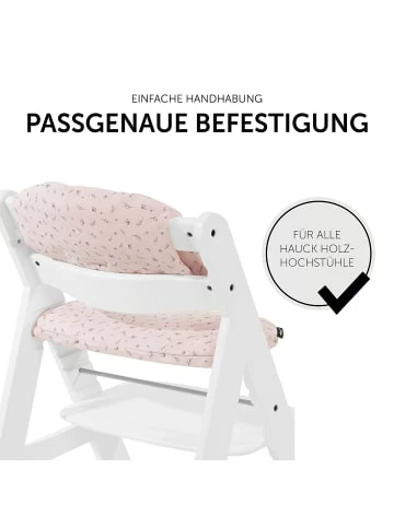 Mit diesem Sitzverkleinerer “Alpha Highchair” mit doppelt gepolstertem Rückenkissen haben es Kinder im hauck-Hochstuhl noch bequemer. Die zweiteilige Sitzauflage dient dabei nicht nur als Sitzverkleinerer, sondern auch als weiche Unterlage. Sie ist mit den Gurtsystemen kompatibel und verrutscht nicht, wenn sich das Kind bewegt. Es besteht aus weichem Jersey-Gewebe und dadurch besonders sanft zur Haut. Der Stoff ist atmungsaktiv sowie feuchtigkeitsregulierend und beugt Wärmestau vor. Darüber hinaus ist die Unterseite mit einer Anti-Rutsch-Beschichtung versehen. Die passgenaue Auflage kann einfach und schnell durch Druckknöpfe befestigt werden.Details:– mit allen Hauck-Holzhochstühlen kompatibel – kompatibel mit beiden Gurtsystemen– aus weichem Jersey-Gewebe– atmungsaktives, feuchtigkeitsregulierendes Material – leichte Befestigung mit Druckknöpfen– Anti-Rutsch-Beschichtung an der UnterseiteMaterial: – Obermaterial: 100% BaumwolleAltersempfehlung:ab 6 Monat(e) bis 36 Monat(e)