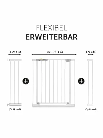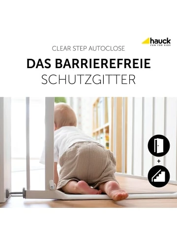 Mit dem Türschutzgitter Clear Step Autoclose von hauck können Türen und Treppen kindersicher gestaltet werden. Der sehr flache Durchgang ermöglicht außerdem ein stolperfreies Hindurchgehen. Der zusätzliche Stopper ermöglicht es, die Tür in eine Richtung zu sperren.Details:– flacher, stolperfreier Durchgang – automatisches Schließen per Magnet – Sicherheitsstopper ermöglicht Öffnen in nur eine Richtung – für Türen und Treppen mit einer Öffnung von 75 bis 80 cm– Erweiterungen für andere Maße separat erhältlich– schnelles Anbringen per Druckbefestigung ohne Bohren oder SchraubenAltersempfehlung:ab 0 Monat(e) bis 24 Monat(e)