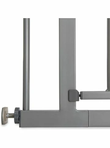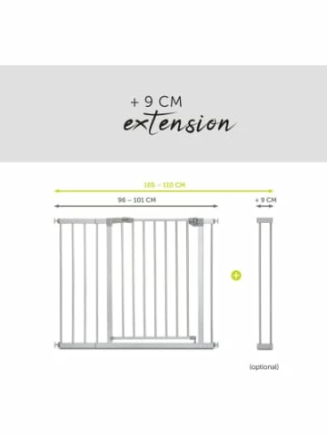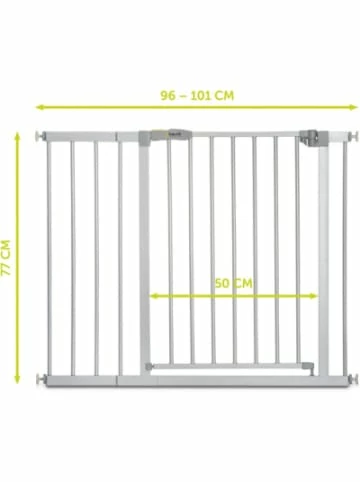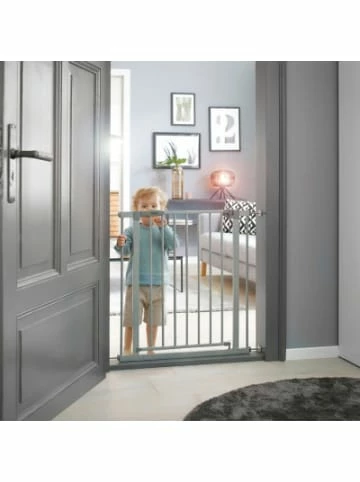 Das HAUCK Schutzgitter “Stop N Safe 2” wird bereits mit einer Verlängerung geliefert und eignet sich dadurch ideal für die Absicherung von Treppen und Durchgängen. Damit sorgen Eltern im Handumdrehen für ein sicheres Zuhause. Mit den Stellschrauben lässt sich das Gitter problemlos und ohne Bohren sicher zwischen Treppenaufgängen, Wänden oder Türrahmen einspannen. Die integrierte Türe hat einen zweifach gesicherten Schließmechanismus, der von Kindern nicht geöffnet werden kann. Erwachsene können die Tür mit einer Hand in beide Richtungen öffnen, so dass stets eine Hand frei bleibt.Details:– Verlängerung inklusive– eignet sich für Durchgänge von 96 bis 101 cm– einfache Anbringung ohne Bohren– manueller Verschluss mit zweifacher Sicherung– lässt sich mit einer Hand in beide Richtungen öffnen – sicherer HaltMaße: ca. 75 x 77 x 4 cm (B x H x T)Material: KunststoffHinweis: Bei diesem Artikel handelt es sich um ein selbstjustierendes Schutzgitter. Das anfänglich schief stehende Seitenteil wird durch das Anziehen der Stellschrauben gerade. So wird ein sicherer Halt und eine parallele Fixierung im Bereich des Schließmechanismus gewährleistet.Altersempfehlung:ab 0 Monat(e) bis 4 Jahr(e)