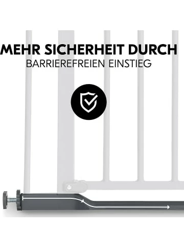 Mit dem Türschutzgitter Clear Step Autoclose 2 von hauck können Türen und Treppen kindersicher gestaltet werden. Der sehr flache Durchgang ermöglicht ein stolperfreies Hindurchgehen. Durch den Magnetverschluss schließt das Gitter anschließend automatisch, egal, in welchem Winkel es losgelassen wird. Der zusätzliche Stopper ermöglicht es, die Tür in eine Richtung zu sperren.Details:– flacher, stolperfreier Durchgang– automatisches Schließen per Magnet– Sicherheitsstopper ermöglicht Öffnen in nur eine Richtung– für Türen und Treppen mit einer Öffnung von 75 bis 80 cm– Erweiterungen für andere Maße separat erhältlich– schnelles Anbringen per Druckbefestigung ohne Bohren oder SchraubenMaterial: Metall, KunststoffAltersempfehlung:ab 0 Monat(e) bis 24 Monat(e)
