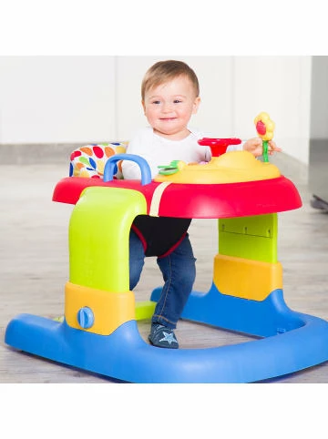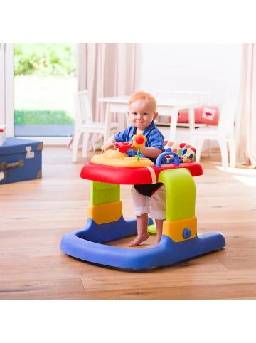 Die Lauflernhilfe 2in1 von Hauck erleichtert die ersten Gehversuche. Dabei sorgen die Treppenstopper für ausreichende Sicherheit. Für viel Freude sorgt das farbenfrohe Spielcenter, das mit spannenden Geräuschen und bunten Lichtern auf seinen Einsatz wartet. Bei Bedarf kann es abgenommen werden.Ist Ihr Nachwuchs älter und sicherer beim Laufen, kann der Sitzeinhang entfernt werden, sodass die Lauflernhilfe nun selbstständig geschoben wird. So kann Ihr Liebling seine Umgebung genau erkunden. Dank der 3-fachen Höhenverstellbarkeit passt sich die Lauflernhilfe optimal der Körpergröße an.Details:– Maße aufgebaut: 74 x 58 x 52,5 cm– Maße zusammengeklappt: 74 x 58 x 47,5 cm– Gewicht: 4,8 kg– mit Soundmodul– Batteriebedarf: 2 x LR 6 AA (nicht im Lieferumfang enthalten)– individuell in der Höhe verstellbar– mit Treppenstopper– geeignet bis max. 9 kgMaterial:– Sitzeinhang: 100% PolyesterUnsere Entsorgungshinweise zu Batterien und Elektrogeräten finden Sie auf http://www.mytoys.de/c/entsorgungshinweise.htmlAltersempfehlung:ab 6 Monat(e) bis 24 Monat(e)