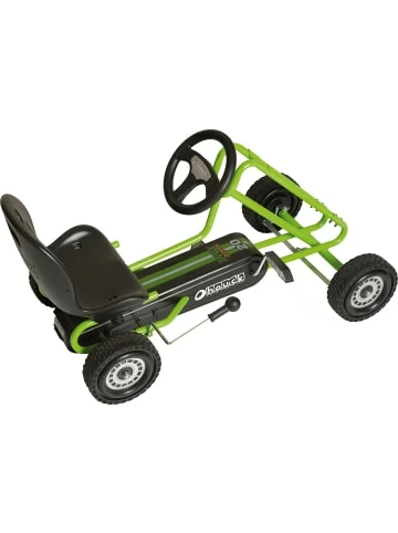 Das Go Kart Lightning von hauck TOYS FOR KIDS wurde als Funmobil speziell für Fahranfänger entwickelt. Der Lightning wurde als Tretauto für Einsteiger konzipiert. Geringes Gewicht, sportliches Design und trendige Farbgebung machen den Lightning zu einem echten Spaßmobil für Jungen und Mädchen ab 4 Jahren. Neben dem Training von Kraft, Ausdauer und Reaktionsvermögen können mit diesem Go-Kart spielerisch erste Verkehrsregeln und sogar das Rückwärts-Einparken erlernt werden. Damit das Tempo immer unter Kontrolle bleibt, wirkt die einfach zu bedienende Handbremse auf beide Hinterräder und bietet somit optimale Sicherheit. Der Schalensitz ist entsprechend der Beinlänge des Kindes verstellbar und mit einer komfortablen Rückenlehne ausgestattet. Details:• robuster Stahlrohrrahmen• Kunststoffräder mit Gummiprofil Ø 19 cm• Handbremse für beide Hinterräder• verstellbarer Schalensitz• Länge der Sitzmitte zum Pedal (vorderste Stellung): vordere Position: 44 cm, hintere Position: 51 cm• Gewicht: 9,6 kg• Maße (L/B/H): 97 x 53,5 x 56 cm • maximale Belastbarkeit: 50 kg • Körpergröße: 90-110 cm)Altersempfehlung:ab 4 Jahr(e) bis 8 Jahr(e)ACHTUNG: Benutzung unter unmittelbarer Aufsicht von Erwachsenen Die maximale Tragkraft beträgt 50kg. Für eine sichere Benutzung ist ein ausgeprägter Gleichgewichtssinn erforderlich. Mit Schutzausrüstung benutzen. Nicht im Straßenverkehr zu verwenden! Nicht für Kinder unter 36 Monaten geeignet. Erstickungsgefahr aufgrund verschluckbarer Kleinteile.