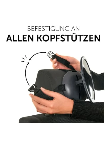 Mit diesem Spiegel für die Kopfstütze der Rücksitzbank Ihres Fahrzeuges haben Sie Ihr Kind in der Babyliegeschale oder einem Reboardsitz immer im Auge. Der Spiegel läßt sich mit 4 Gurten sicher und fest an jeder Kopfstütze montieren und kann sowohl horizontal wie auch vertikal frei verstellt werden. Das große Sichtfeld sorgt dabei immer für freie Sicht und das hochwertige und bruchfeste Material verringert das Verletzungsrisiko.Maße: 21 x 19 cmMaterial: KunststoffPflegehinweis: abwaschbarAltersempfehlung:ab 0 Monat(e) bis 4 Jahr(e)